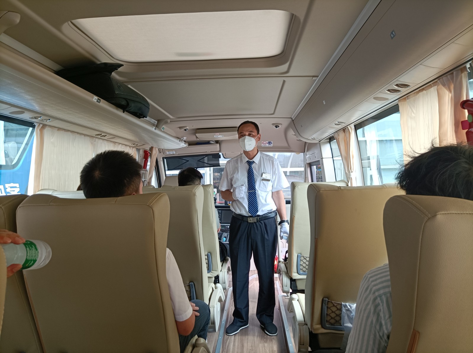 為迎接第一批旅客,班車提前做好了車輛檢查等準(zhǔn)備工作,駕駛員標(biāo)準(zhǔn)著裝提前等待,引導(dǎo)乘客上車。發(fā)車前對乘客進(jìn)行安全喊話,并提醒乘客系好安全帶,佩戴好口罩,確保旅客安全通暢。