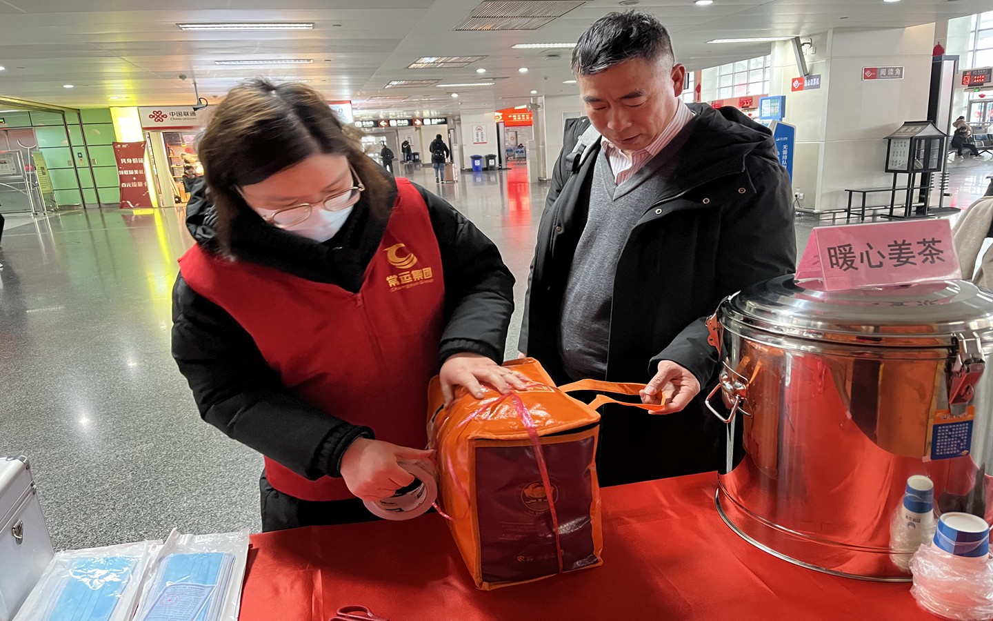 更走心是對寒冬報以熱愛。2月以來,多地降雪,常州的氣溫也較低,特別是早上六七點更冷。車站工作人員早早準(zhǔn)備,搭起“春運溫馨服務(wù)站”,免費提供熱騰騰的姜茶,一杯杯姜茶讓車站里南來北往的過客多了不少互動,也增加了很多的歡聲笑語。